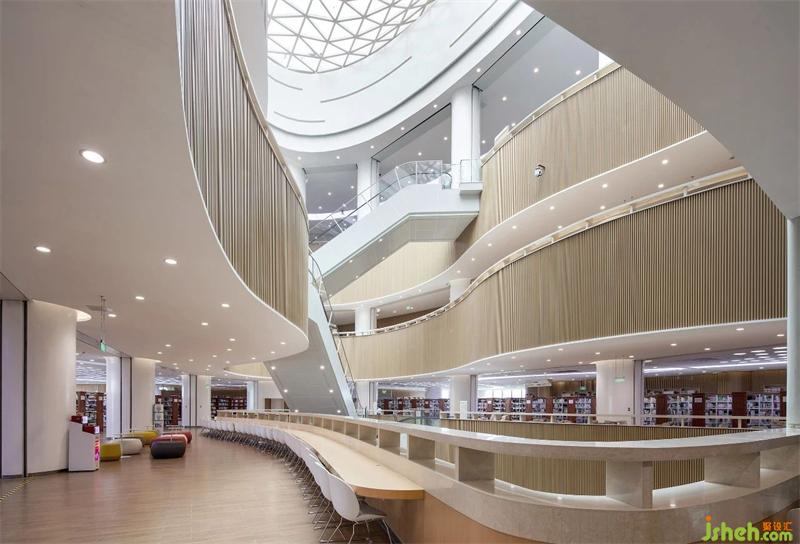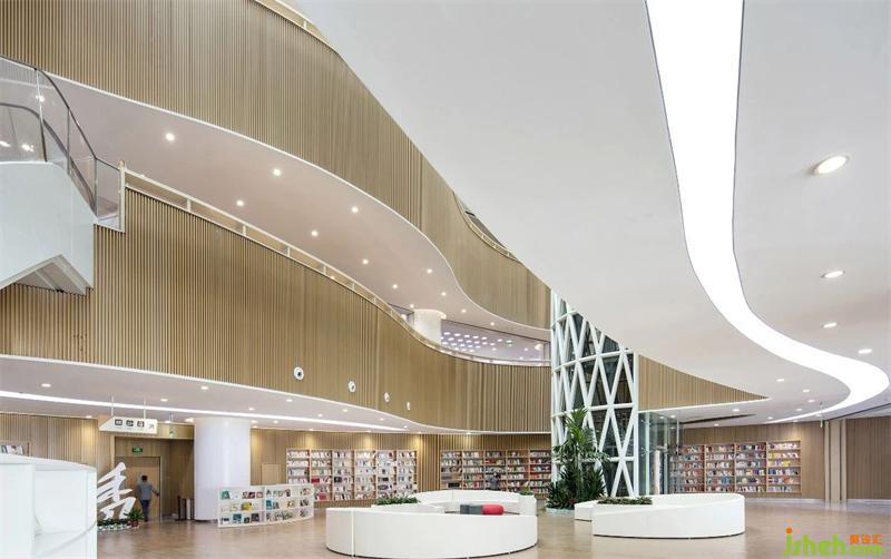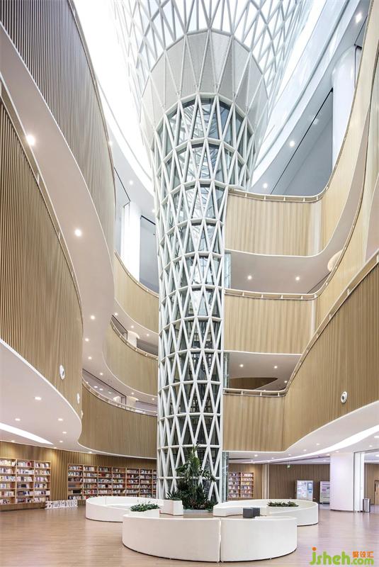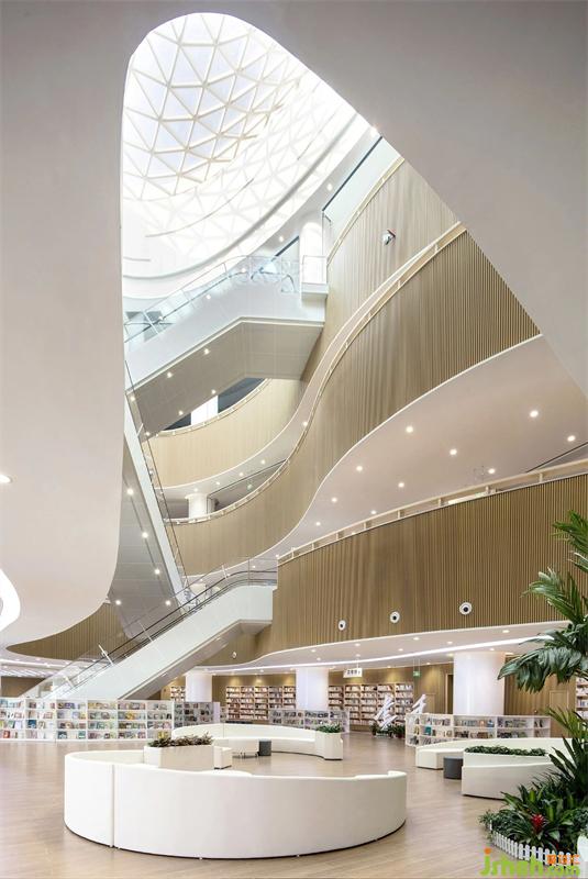 襄陽(yáng)市圖書(shū)館新館,位于東津新區(qū),是一所集藏書(shū)、閱覽、信息處理、學(xué)術(shù)交流、新媒體示范、推廣應(yīng)用為一體的綜合性現(xiàn)代化場(chǎng)館。圖書(shū)館設(shè)計(jì)以繁華喧鬧城市中的自然靜謐空間體驗(yàn)為設(shè)計(jì)主旨,在借助光與線條塑造空間優(yōu)美造型的同時(shí),注重地域純樸人文、自然、人性化的細(xì)節(jié)融入。