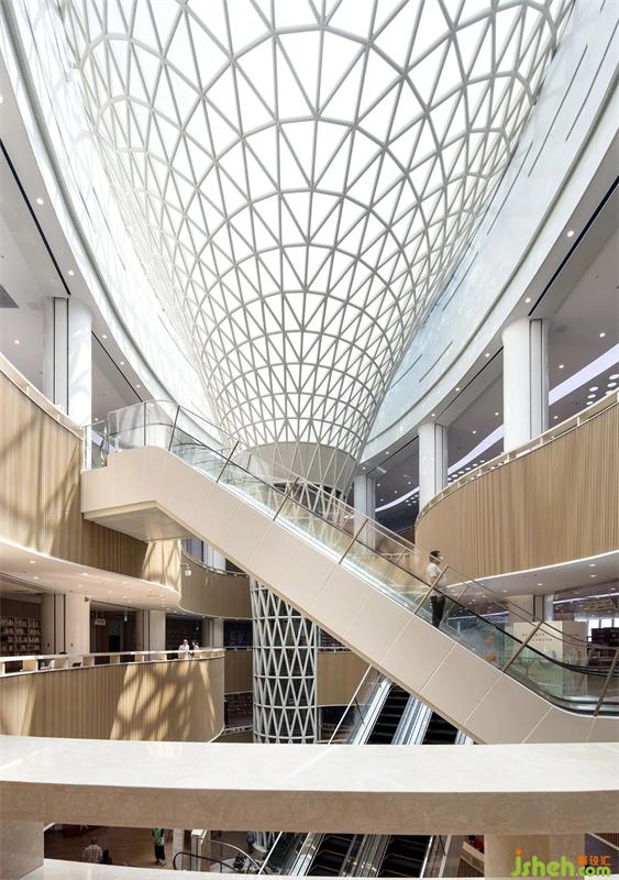 自然的光借著季節(jié)推移,透過(guò)建筑空間,讓人感受到細(xì)膩光線變化賦予空間不同的氣氛,就像文化歷史長(zhǎng)河的流淌,讓空間記錄萬(wàn)象。白色天空,輕盈的線性光帶,宛如“漢水”在空間流淌,帶來(lái)緩緩生機(jī)。