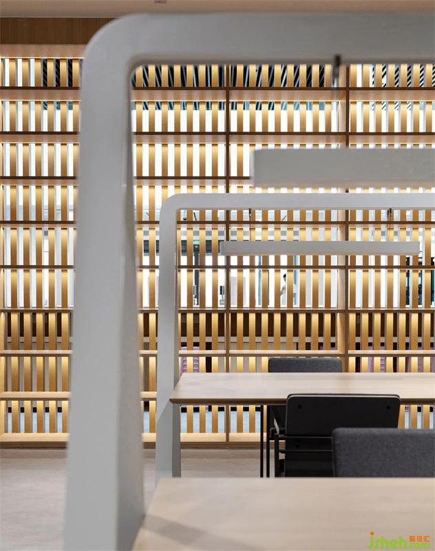 科技展現(xiàn)未來(lái),在學(xué)習(xí)中發(fā)現(xiàn)數(shù)字化的秘密。簡(jiǎn)潔白色和自然木色構(gòu)成活躍的色彩,塑造出純凈、暖意的空間感受。燈光在序列的隔柵中穿梭、跳躍,調(diào)和了空間層次感,塑造出富于活力的數(shù)字空間。