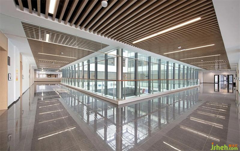 中庭空間擁有充足的采光,玻璃使空間置入到一個通透的知識魔盒中。隨著太陽位置的不斷變化,周圍形成動態(tài)的光影,讓空間不再是固定形態(tài)。