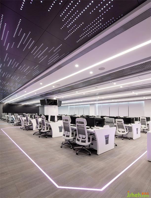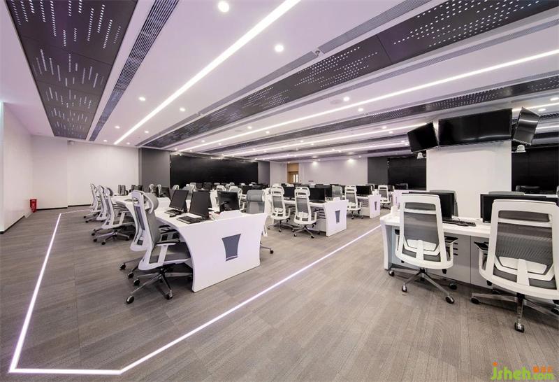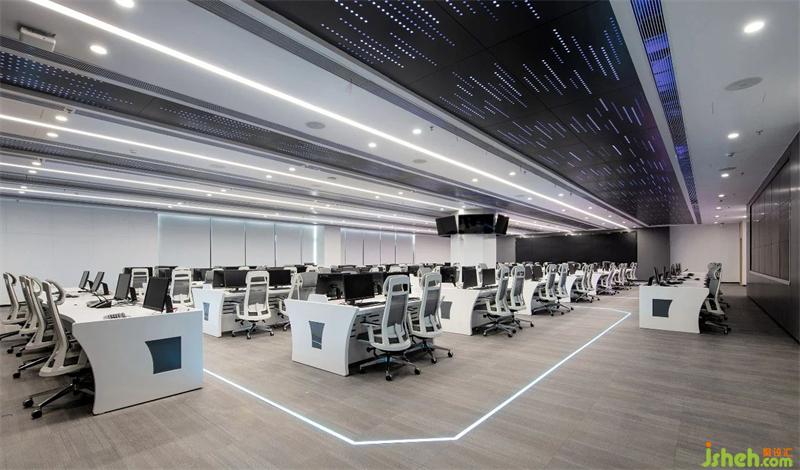 模擬網絡攻防賽場的實驗室,地面及天花通過區(qū)域的分隔及燈光的控制劃分紅藍雙方。將線性構成和數(shù)字化的元素燈光融入在造型之中,地面細節(jié)的處理和氛圍的營造,強調網絡攻防實驗室的空間智慧科技感。