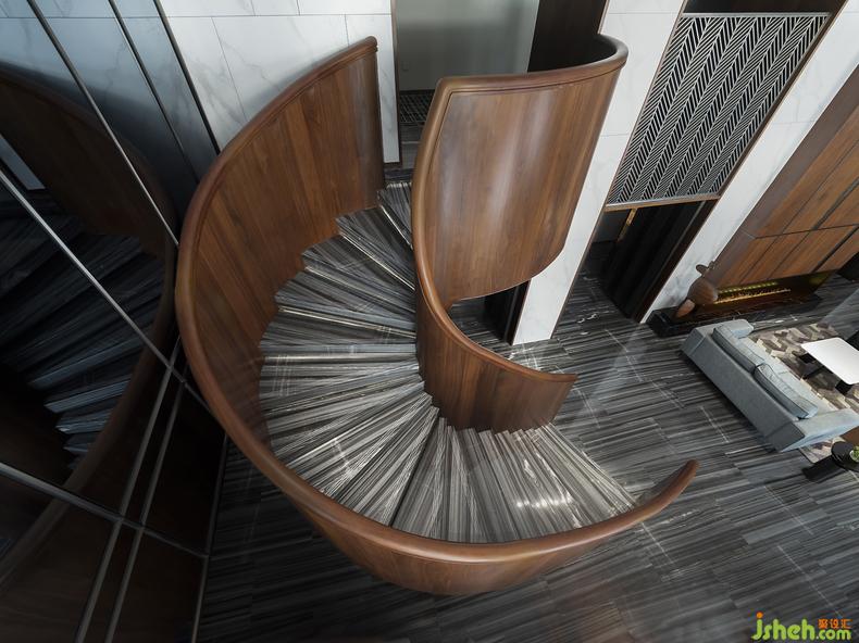 連接二層客房的樓梯,所傳遞的視覺沖擊終于被極大地釋放,它從螺旋方式到色彩,城市酒店設(shè)計在有序中變化,暗示著其他空間的存在。形態(tài)、樣式各異的家具與藝術(shù)品于此巧妙邂逅,在比例、色彩和故事間平衡出自由生動的活力。