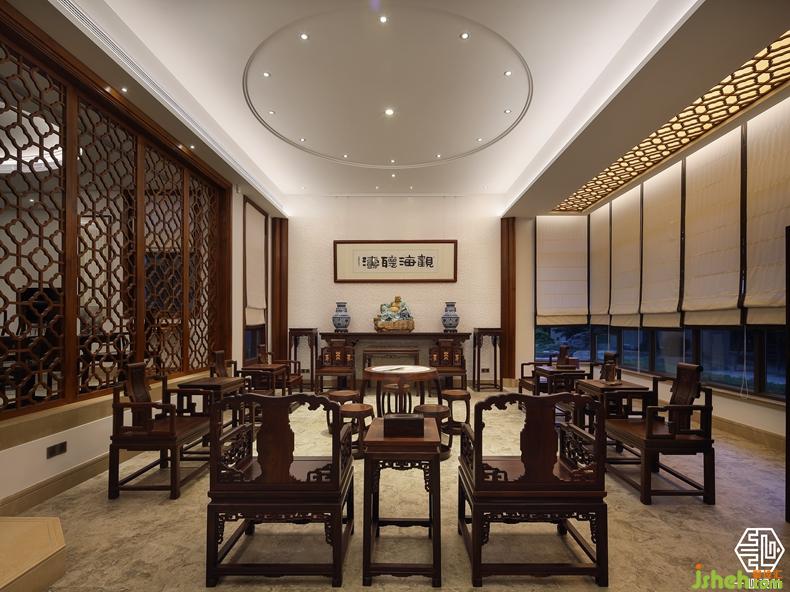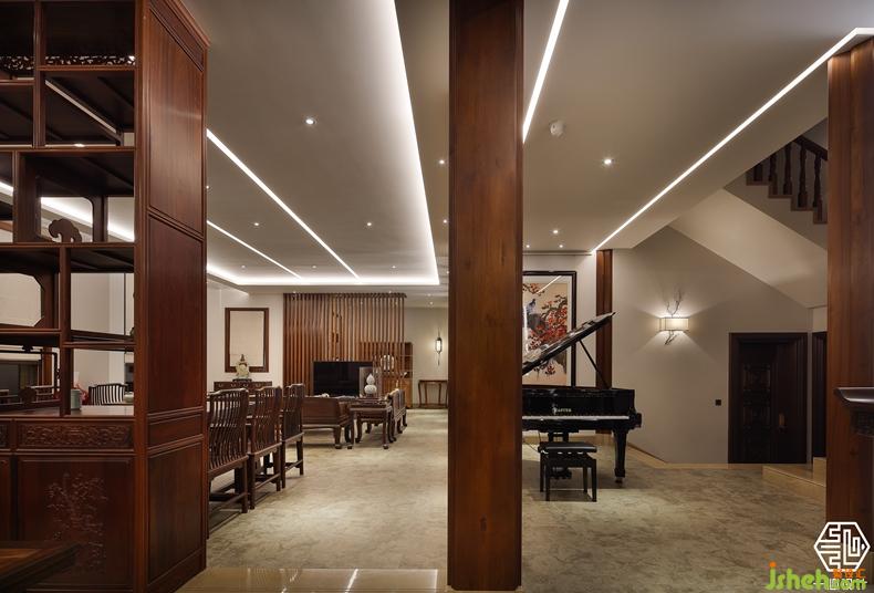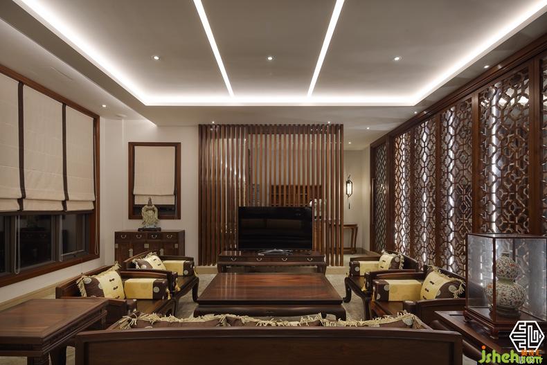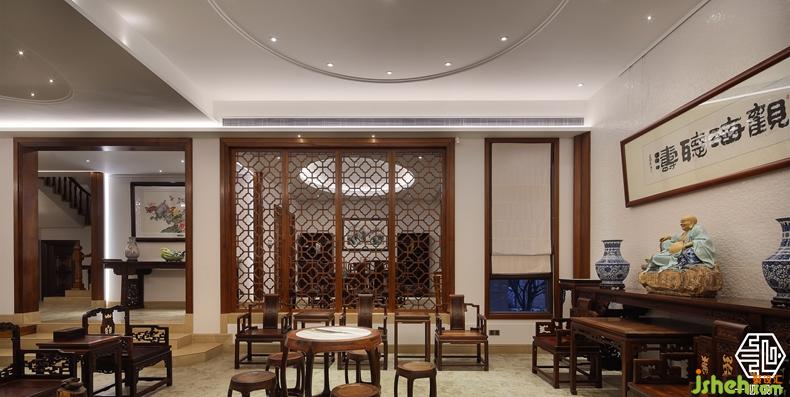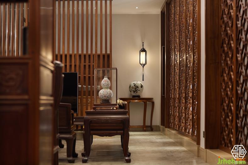 該案由兩個(gè)別墅圍合成一個(gè)院落形式,故稱合院別墅。設(shè)計(jì)師根據(jù)兩位業(yè)主不同愛(ài)好,用中式的手法演繹兩種不同風(fēng)格的中式設(shè)計(jì)。其中嶺南人家酷愛(ài)柚木,酷愛(ài)紅木家私,別墅裝飾設(shè)計(jì)師巧妙的合其所好,熾烈的嶺南文化與奔騰的紅木藝術(shù)風(fēng)格相互融合,形成了具有南方特色的中式別墅風(fēng)格。