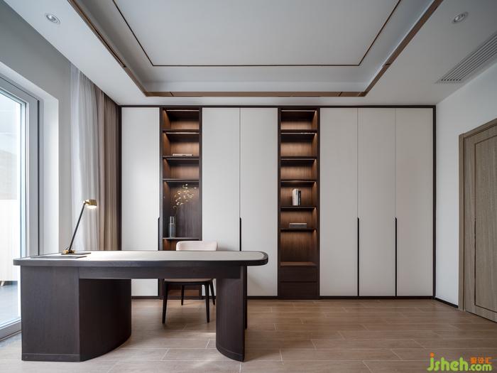 柔和白色與褐色之間的互動(dòng),北京復(fù)式大宅設(shè)計(jì)為空間增添出舒緩的寧靜之態(tài)。
