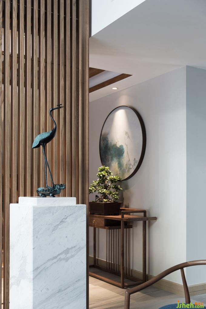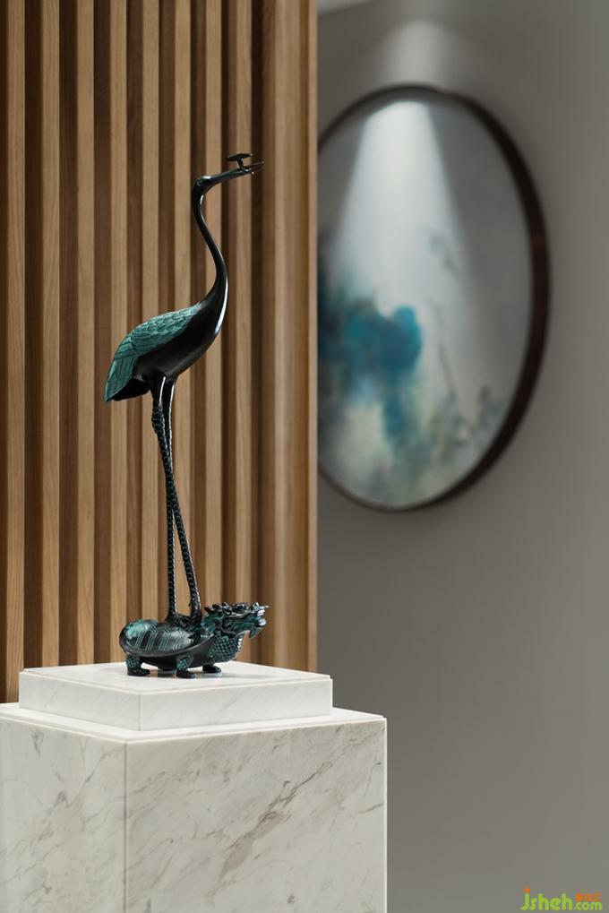 迎客松、潑墨畫(huà)、青銅鶴,入戶即能感受“儒氣雅韻,心靜如華”的東方詩(shī)意生活。