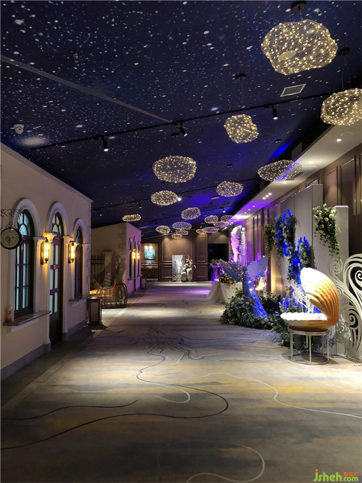 三個主題宴會廳依次排開,既有歐式教堂的輝煌,現(xiàn)代手法的提煉;也有夢幻海洋,燈光氛圍的營造;還有身臨其境的微光森林。