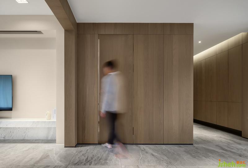 整體空間室內設計師采用白色墻面線條處理及原木飾面
