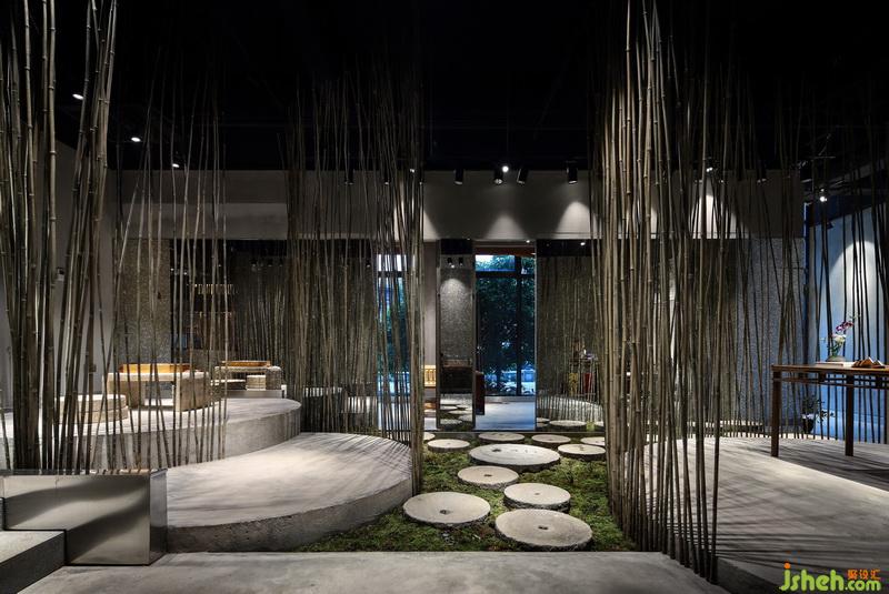 引入水景、綠植、青竹、青石板等營造氛圍,