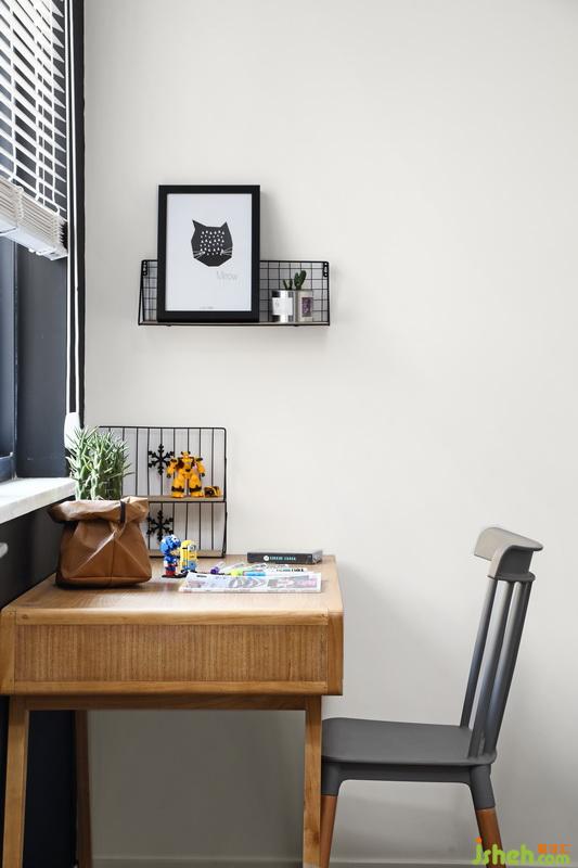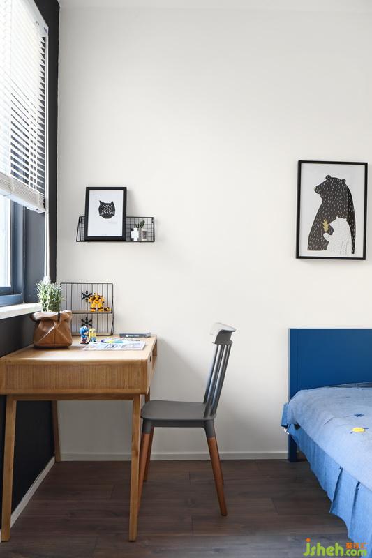 推開(kāi)門(mén)就知道這是個(gè)男孩子的房間,簡(jiǎn)約藍(lán)色的小床足夠睡到十多歲,墻面的裝飾畫(huà)可以更具年齡隨時(shí)更換;靠窗學(xué)習(xí)的小桌子光線(xiàn)充足,白色的百葉窗既可以裝飾又可以很好的遮擋光線(xiàn),對(duì)了進(jìn)門(mén)的左手邊有一整面黑板墻可以讓寶貝在這個(gè)活潑的年齡跟著自己的小伙伴在自己的小天地隨手涂鴉,關(guān)門(mén)一個(gè)世界開(kāi)門(mén)一個(gè)世界。