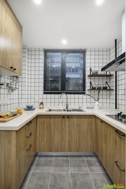 狹小的廚房間選擇流行的白色小面包磚鋪貼墻面與業(yè)主的想法不謀而合,搭配原木的柜體門(mén)板,配上裸露的燃?xì)夤艿溃磺卸际悄敲丛甲匀弧?