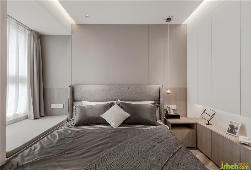 主臥室灰色硬包與木掛板相得益彰,有節(jié)制的灰調(diào)凝練出的溫和承載屋主揮斥方遒背后的疲憊
