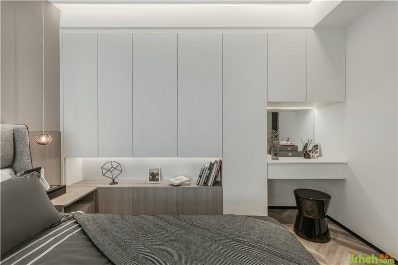 你是否有在臥室缺少一個(gè)自己的化妝臺(tái)或者書桌的煩惱,但是設(shè)置在床頭又不夠美觀,床尾又擔(dān)心突出來(lái)撞角。我們利用柜子的深度將書桌設(shè)置其中,美觀又節(jié)省空間。且柜子的開(kāi)放空間和床頭柜做一整體,不僅在空間感上有所增增加,在視覺(jué)美感上也得到了提升。
