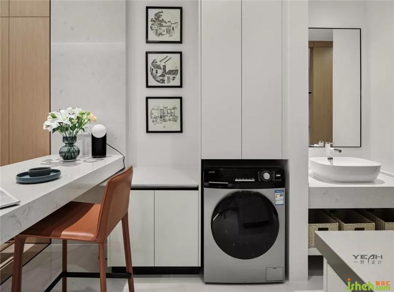 衛(wèi)生間采用了大面積的白色,干凈明亮而又不失質(zhì)感室內(nèi)設(shè)計(jì)師。
