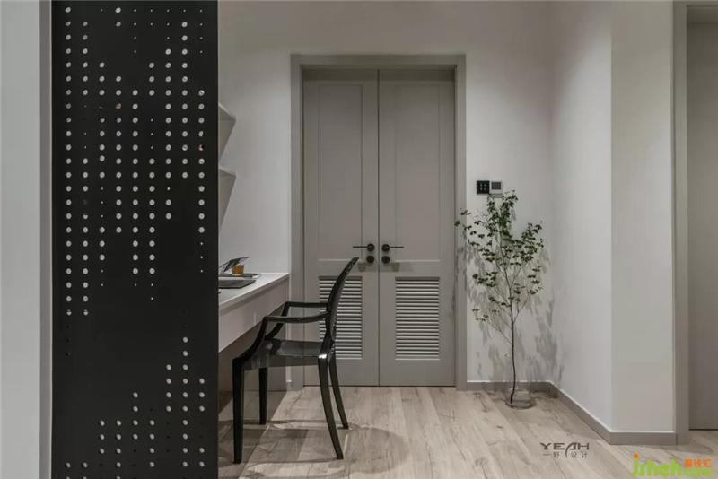 衣帽間的雙開門設(shè)計,不僅增加了整個空間的氣場,讓留連于功能空間的儲物上,注入一種格調(diào)。
