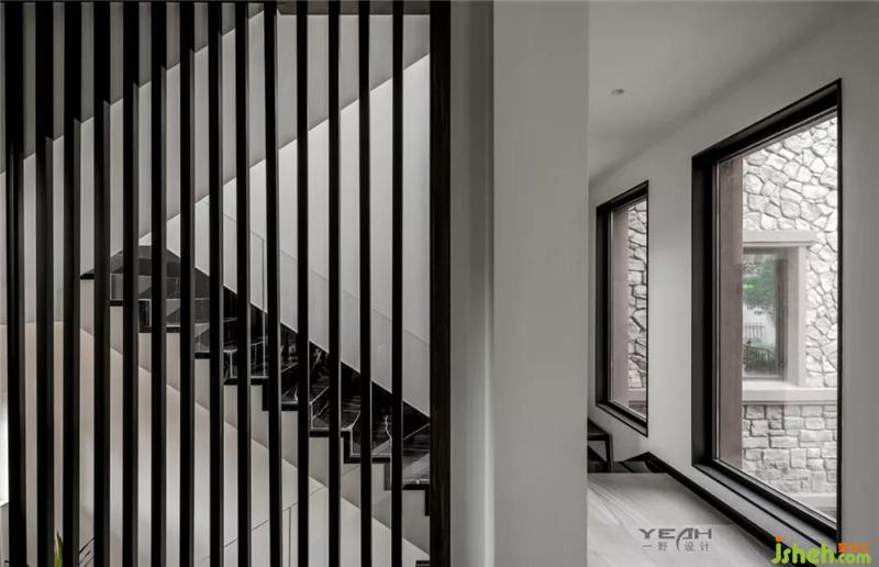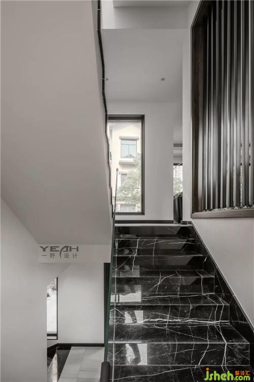 Stairs are the link of space communication and an important part of design. The designer opened the side walls of the stairs and used grilles as partitions. It makes the whole space more transparent and also has a good decorative effect.