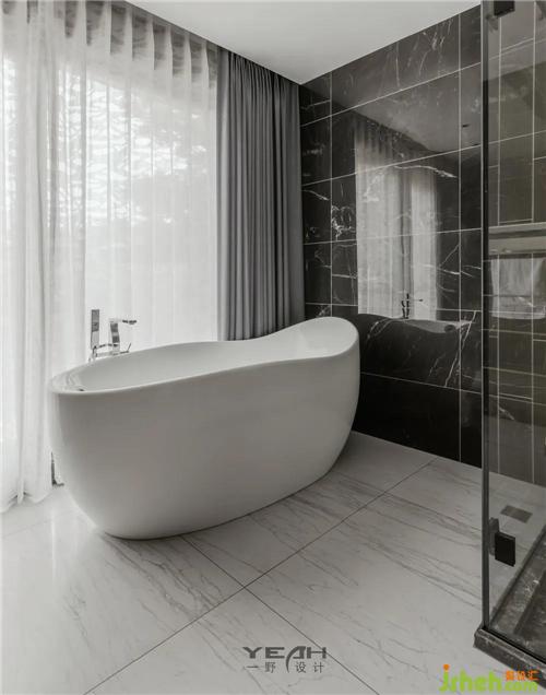A large area of the bathroom is made of raw gray, and it is embellished with point light sources to create a high-class, mysterious and light luxury atmosphere.