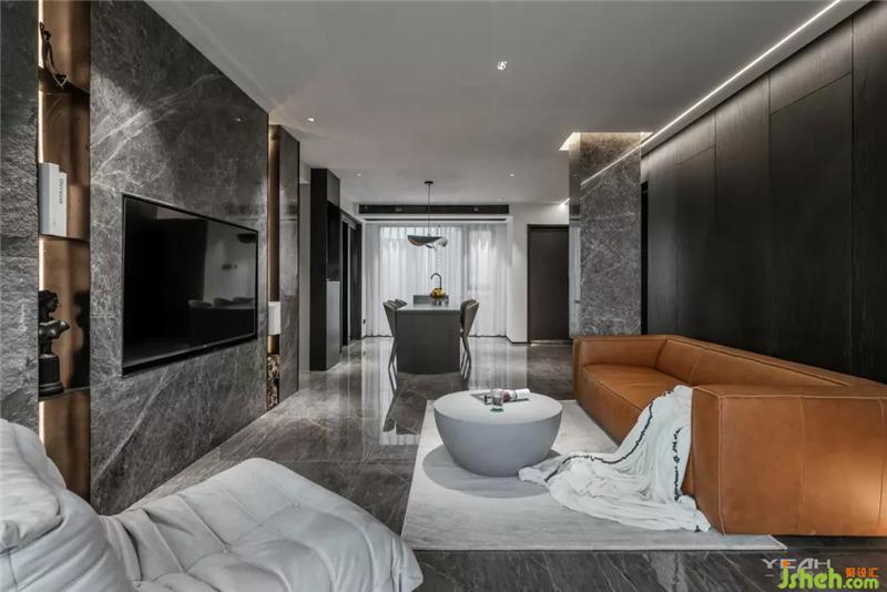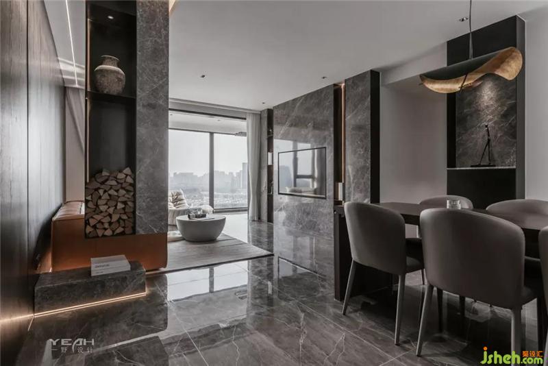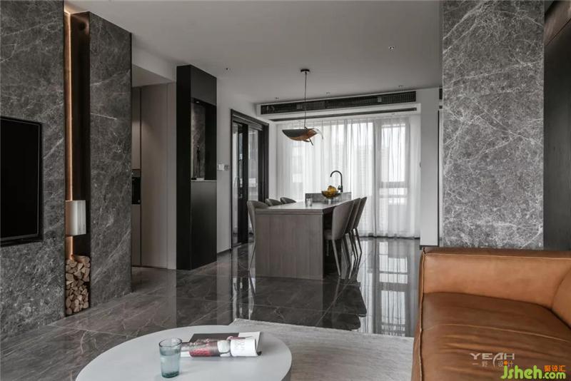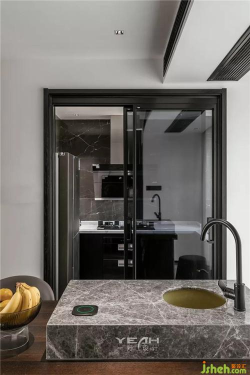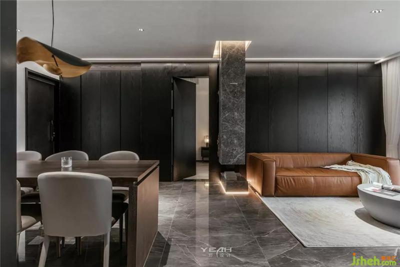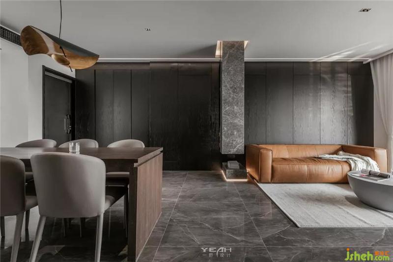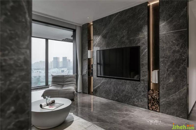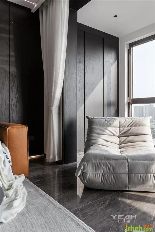 私人領域,須經(jīng)過一個灰色空間的設定。室內(nèi)設計師臥室依舊使用了滿墻的飾面板,采用大面積落地增加采光,每日清晨京杭運河便印入眼簾。