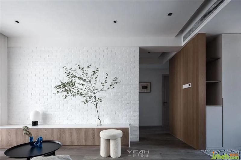 In the treatment of space beam, the continuity of beam body in north-south direction is retained. The beam in the east-west direction of the door head of the study is connected with the wall through the wood veneer. The one-way "line" is transformed into the "body" in the space, which weakens the existence of the beam.