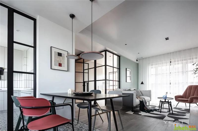 釋放空間的第一步就是打開(kāi)空間,讓陽(yáng)光空氣可以進(jìn)來(lái);裝修設(shè)計(jì)通透的鋼窗取代實(shí)墻,與原有的墻體一起演繹空間中的虛與實(shí),光線透過(guò)玻璃,充實(shí)了整個(gè)空間。