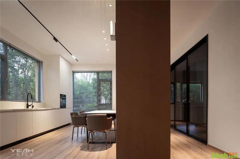 The guest restaurant is free and open, but does not interfere with each other. Floor to ceiling windows and platforms are places for reading, entertainment, rest and communication. It has settled the coexistence of family members and friends, and created subtle emotions between people and things.
