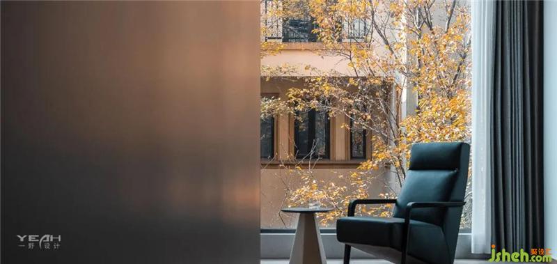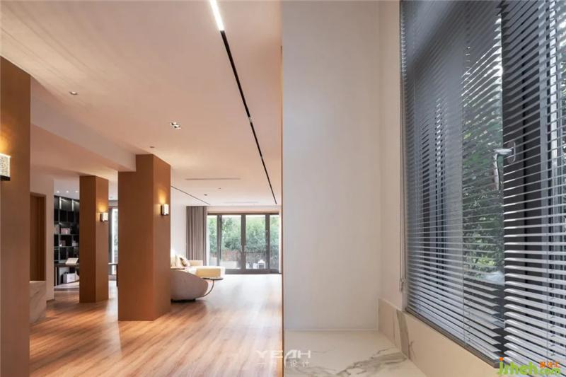 光線透過(guò)百葉窗,引入室內(nèi),景色與室內(nèi)空間重疊交錯(cuò),細(xì)微之下,訴說(shuō)著美好恬淡。