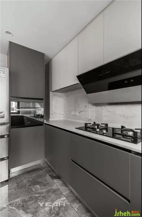 廚房回歸到使用者的角度做思考,室內設計師細膩思考烹調時的各項需求細節(jié)如動線、收納位置、使用機能、燈光需求,材質運用延續(xù)整體空間調性。