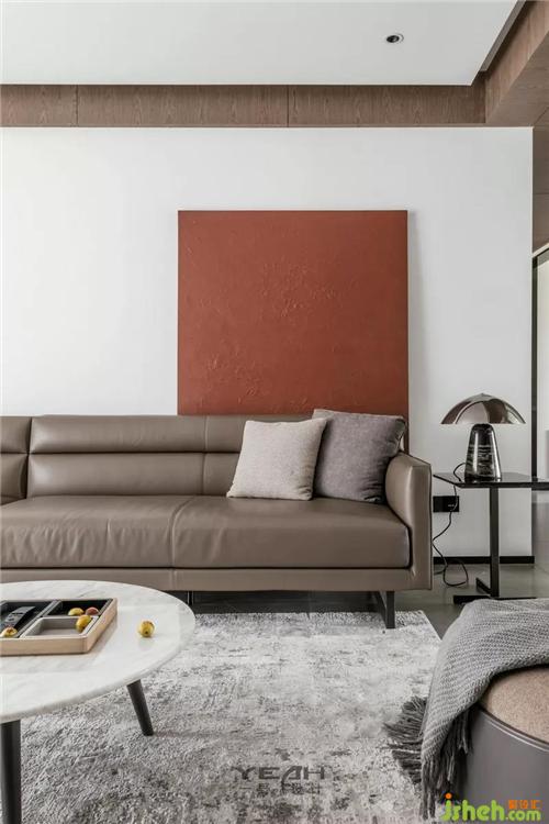 The red decorative painting is used to express the enthusiasm and simplicity of the owner under the simple color expression.