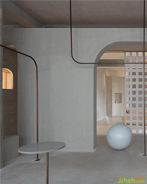 The exhibition hall chooses to build another layer of structure in the original square space, retain the original windows, and the windows are treated with arcs, find the rules in the shuttle, and then extend.