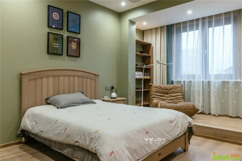 The bathroom attached to the bedroom also uses different colors to distinguish the owner's identity, and the colorful tile splicing is lively and dynamic.