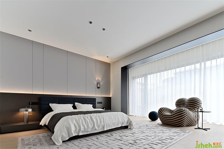 材質(zhì)的碰撞和搭配才讓主臥的風(fēng)格形成一個整體。蘇州別墅裝飾布藝的軟糯溫柔,金屬的堅(jiān)硬不羈,皮質(zhì)的原生觸感,各自保有個性以及滲透,值得細(xì)細(xì)回味。Collision and collocation of materials Just let the style of the master bedroom form a whole The soft waxy fabric is gentle,The hardness of metal,Primary tactile sensation of cortex,Each has its own personality and penetration,It's worth aftertaste.