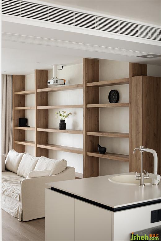 清雋簡潔的空間布局與家具陳設與木色自然交融,延展出安靜、祥和的空間情緒。家具以木質(zhì)與棉麻的材質(zhì)為基調(diào),形成自由度與實用性適宜的彈性空間。湖左岸大平層裝修設計鋪滿整墻的原木展示柜,回歸自然的形態(tài),為家增添松弛感。在溫馨日常里,與家人一起,體驗生活的點滴,將閑適浸潤入一茶一書之間。