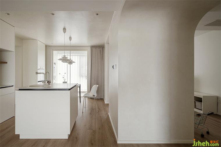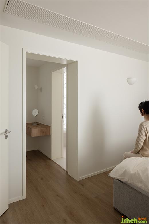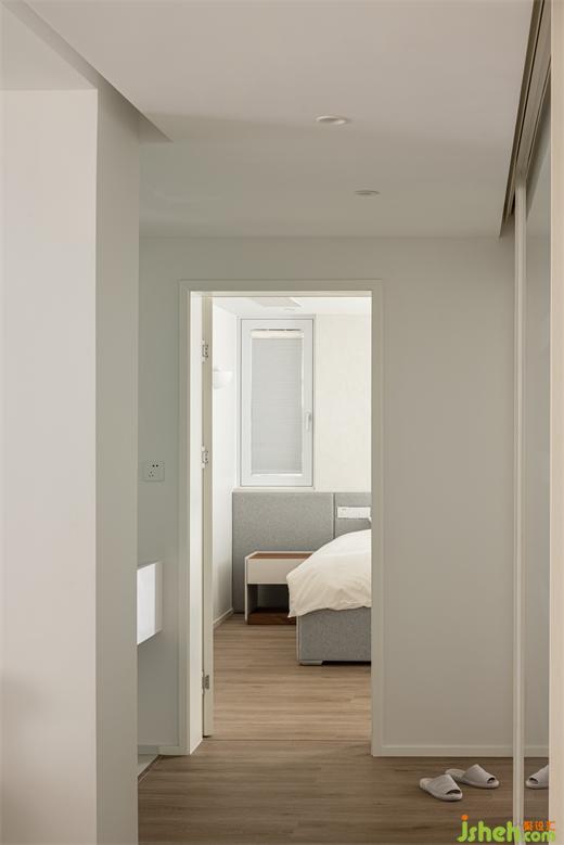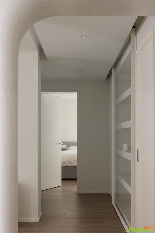 內(nèi)嵌入墻的展示格與玻璃移門(mén)組合,打破空間的壁壘,讓原本不起眼的角落,也能被裝扮的妙趣橫生。于白色基調(diào)的房間內(nèi),用生活的點(diǎn)滴與色彩,描繪出一個(gè)溫馨浪漫的家。