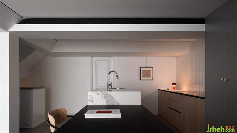 長(zhǎng)桌與操作臺(tái)簡(jiǎn)單質(zhì)樸,卻實(shí)用,演繹著空間里的不同場(chǎng)景。是書房,是水吧區(qū),是親子活動(dòng)的場(chǎng)域......簡(jiǎn)約的空間因可塑性而活了起來。