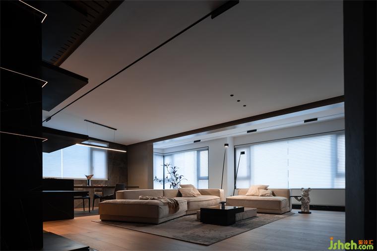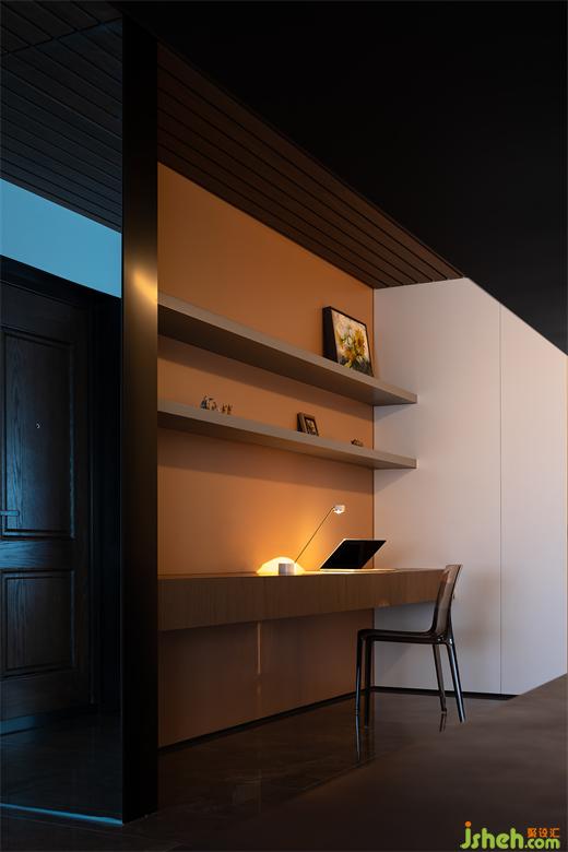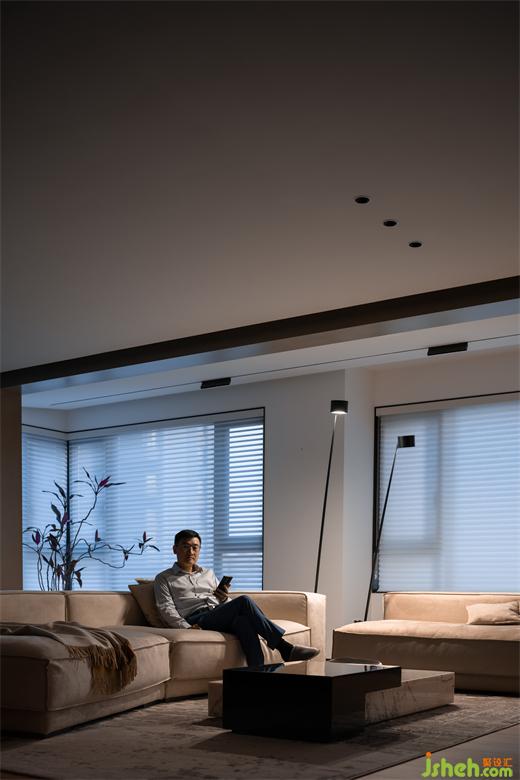 門被隱藏在墻壁內(nèi),降低表現(xiàn)力,貴陽豪宅設(shè)計(jì)在色彩、線條以及結(jié)構(gòu)上保持連貫統(tǒng)一,對(duì)細(xì)節(jié)的處理增強(qiáng)了空間的純凈感,傳遞和諧自然之美,