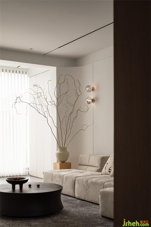 本案家裝設(shè)計(jì)以簡約的布局、溫情的色調(diào)為主軸,構(gòu)建出一個(gè)極具藝術(shù)氣息與禪意精神的生活場域。多種材質(zhì)統(tǒng)一于不規(guī)則的曲直線條下,在空間中釋放出對于家的全新解讀,為居住者帶來了生活方式的優(yōu)化與審美的提升。