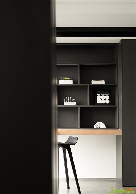 開辟一片靜謐的場域,讓生活回歸愜意與人文。懸挑的L型桌面與深色展示柜接壤,強(qiáng)化空間的結(jié)構(gòu)感。此處是閑暇時(shí)消磨時(shí)光的好去處,也是日常辦公的絕佳場所。