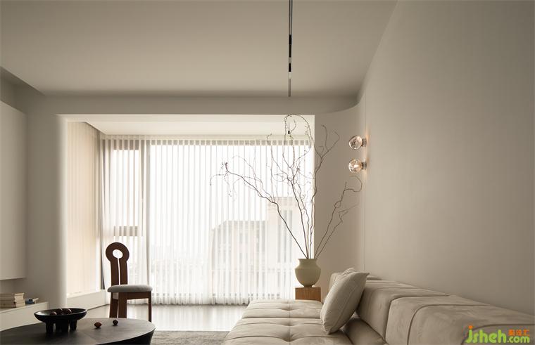光線透過卷簾的縫隙介入,流淌于室內(nèi)的每個角落,它不僅僅是釋放疲倦的休憩場所,更承載著日常的記憶與情感。迎著落日余暉,細細感受生活的美好和靜謐。