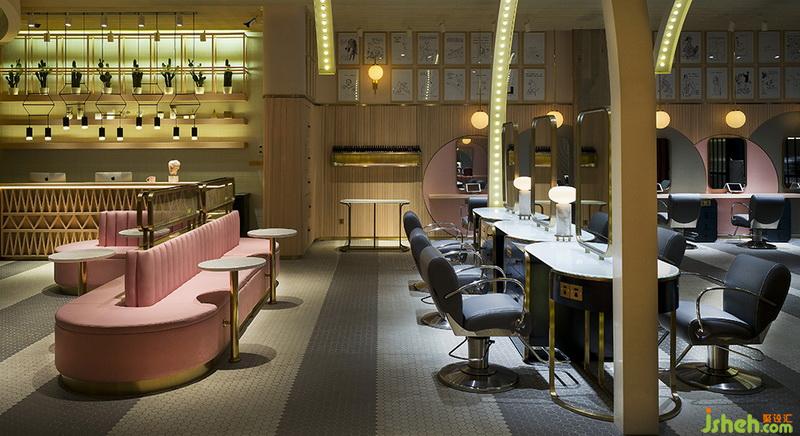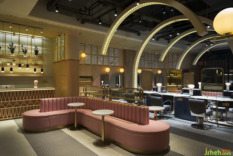 MAY&J是一家以女性和兒童為目標(biāo)用戶的主題型美發(fā)工作室。其設(shè)計(jì)風(fēng)格拋棄了傳統(tǒng)理念中的歐美風(fēng)和炫酷風(fēng),而是將少女系的粉紅色和天藍(lán)色搭配以奢華的金黃色,通過(guò)直觀化的空間享受,為顧客打造出了一個(gè)舒適、清新又自由的新型美發(fā)體驗(yàn)店。