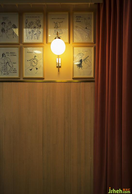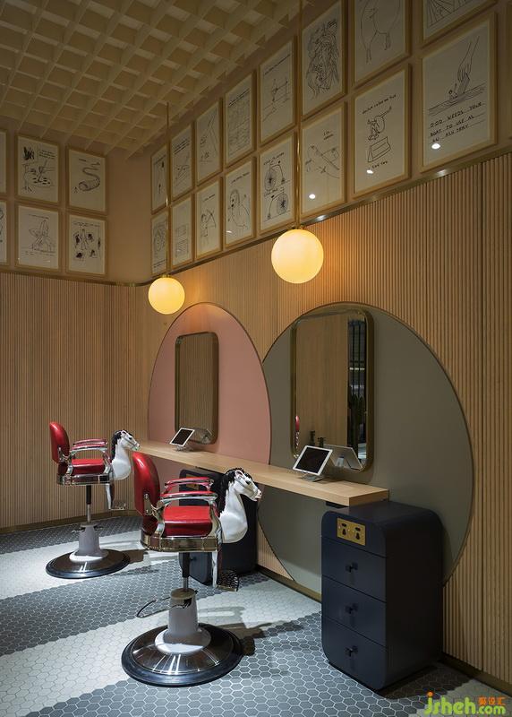墻壁四周懸掛著色彩單一的鉛筆漫畫,既不搶鏡整個(gè)空間的清新色調(diào),室內(nèi)設(shè)計(jì)師又以充盈著諷刺與幽默的奇思妙想,為美發(fā)店增加了趣味性。