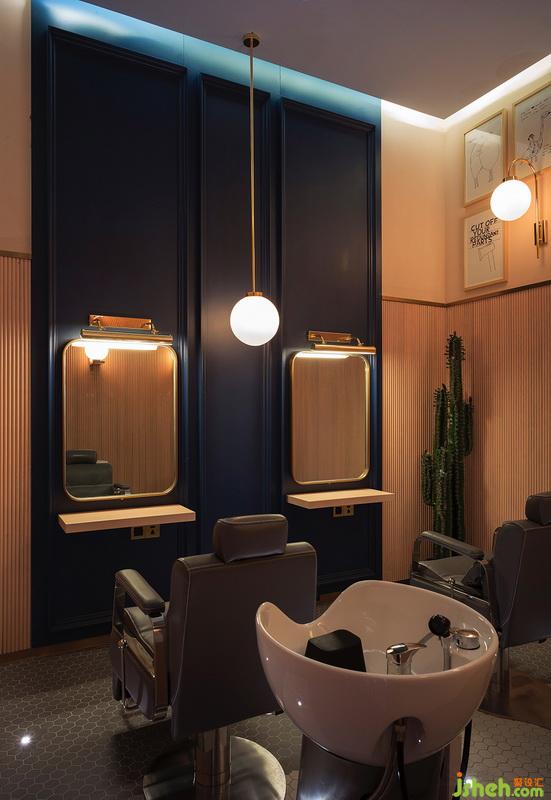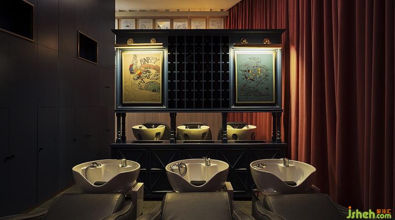 洗發(fā)區(qū)以屏風(fēng)的設(shè)計(jì)增加了整個(gè)空間的層次感,懸掛的抽象漫畫營(yíng)造出了絲絲文藝氣息,加上擁有宇宙星空?qǐng)D案的吊燈設(shè)計(jì),使得整個(gè)洗發(fā)區(qū)既舒適又輕松。
