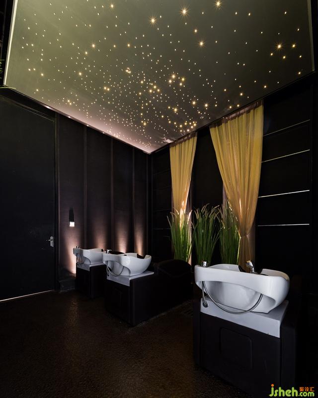 天花板采用星光式的燈光設(shè)計,深邃的星空令人心馳神往,讓顧客在洗發(fā)時,享受心靈暫時的寧靜與遐想。