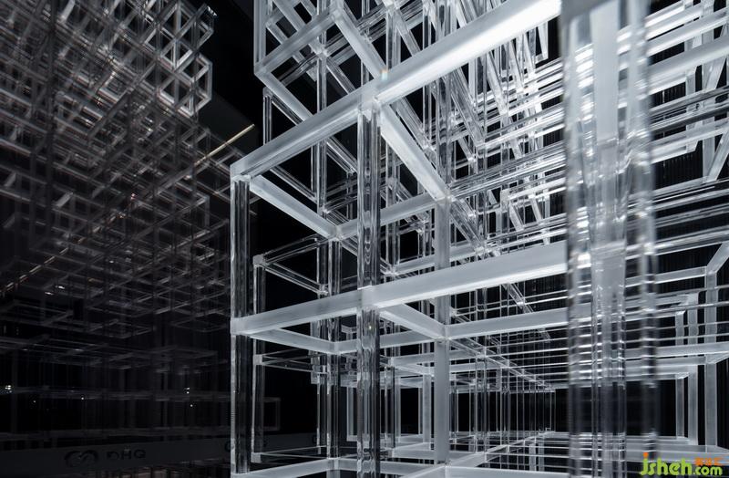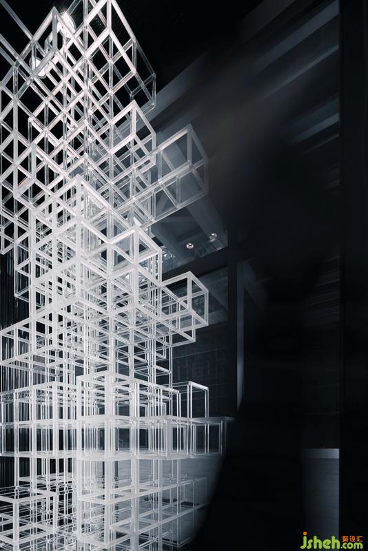 亞克力立方體象征區(qū)域的組合,意味著國家“一帶一路”戰(zhàn)略布局中與拉美地區(qū)的合作關系。室內(nèi)設計師正方形的疊加堆砌透出未來數(shù)碼之城的形象,在抽象中漫步,貫穿天地的挺拔設計,讓人仿佛立于亦假亦真亦夢亦幻的未來之都。