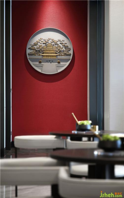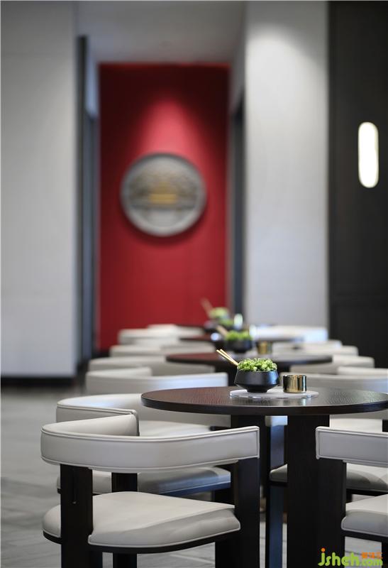 溫潤的木質(zhì)圓桌、皮質(zhì)、金屬構(gòu)件,共同組合出素雅的空間意境。展示架上精心擺放的老物件,遠(yuǎn)處紅墻上的裝飾畫都能讓人找到兒時(shí)的記憶。