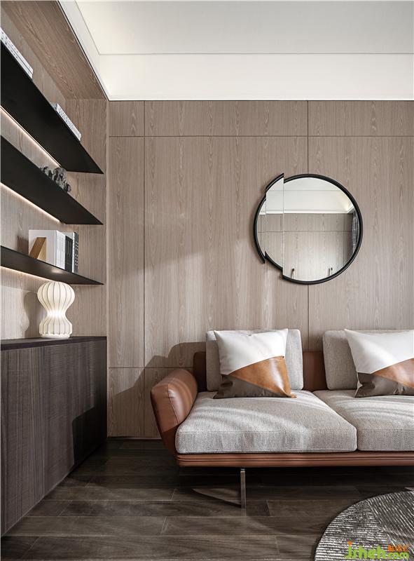 設(shè)計(jì)師在書房的氛圍上做了巧妙的處理:書柜用了成品層板燈,造型輕薄利落,增加的照明設(shè)置也便于書籍的搜索。天花采用留縫收邊的手法,把光源藏匿其中,每當(dāng)夜幕降臨,柔和的光線布滿整個(gè)空間,明亮卻不張揚(yáng)。搭配精心挑選的家具,讓主人無(wú)論是在工作中,還是休憩時(shí)都能獲得最大的享受。