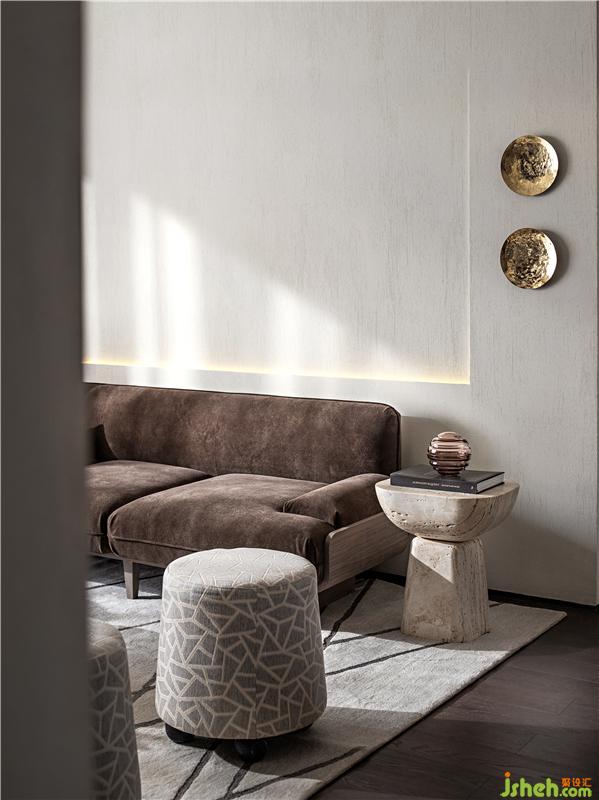 紋理獨特的墻面,素樸粗圓的石材家具搭配整體沉穩(wěn)的大地色飾品,將生態(tài)的自由、質樸與狂野、靈氣呈現(xiàn)于空間之中,賦予空間別樣的生命力。