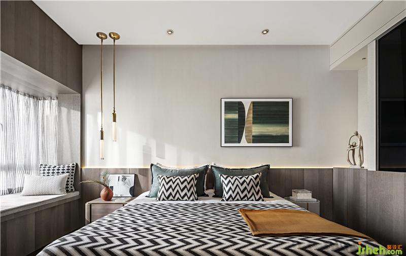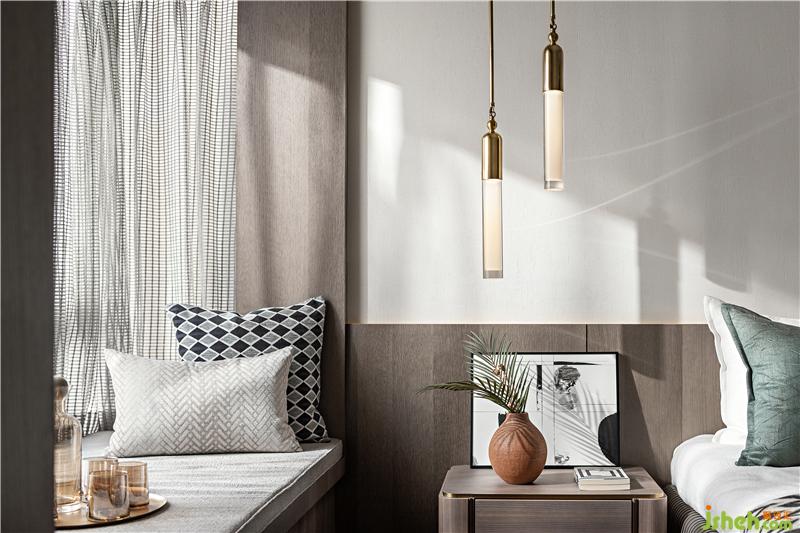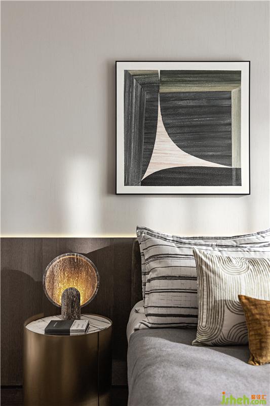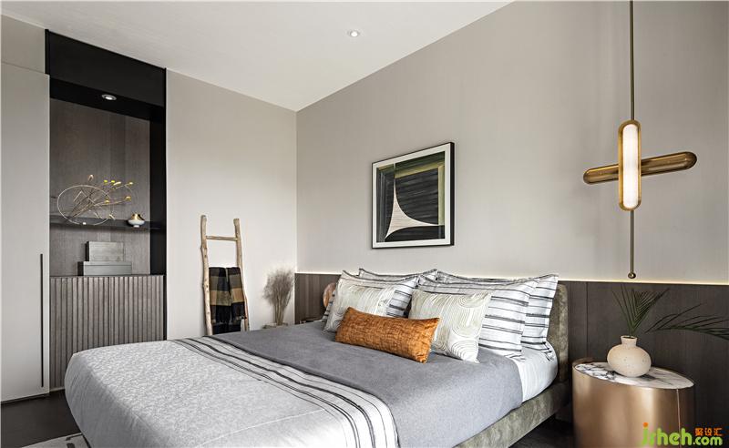 看似素雅平淡的臥室,處處有細節(jié)的堆砌,木質(zhì)的床頭背景板在淡淡一圈的藏光襯托下,散發(fā)著自然的寧靜清冷。在原木的置物架、細膩有質(zhì)感的布藝、自然風干的植物的搭配下,猶如平靜的湖面泛起了漣漪,有了豐富的層次變化。