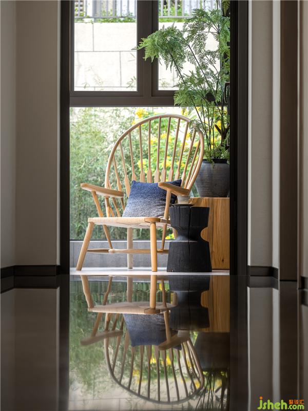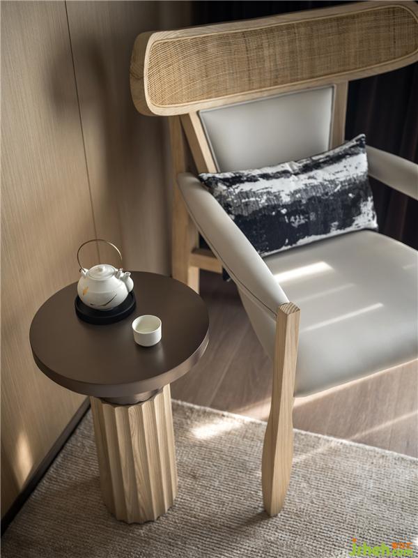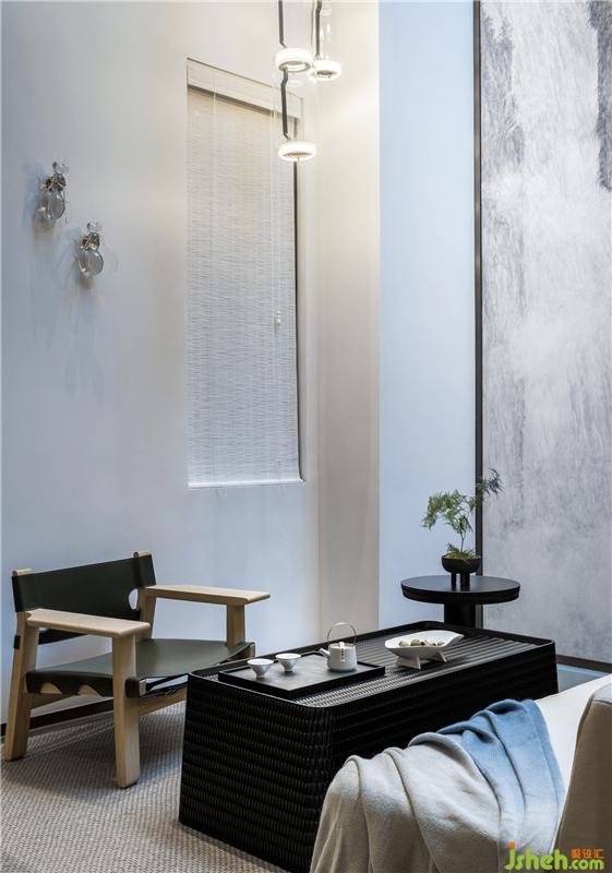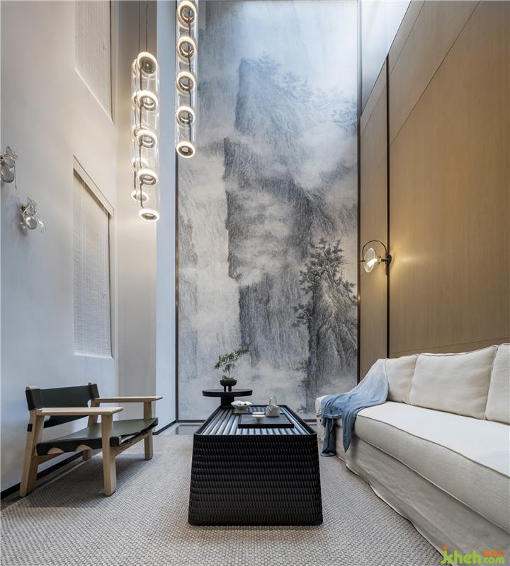挑高的空間設(shè)計(jì)讓交叉斜頂天花達(dá)到視覺(jué)的延伸,家具以質(zhì)樸的自然肌理來(lái)表達(dá)溫潤(rùn)的室內(nèi)氛圍,在細(xì)節(jié)、明亮、質(zhì)感肌理的相互交織下,將隱逸美學(xué)的意境娓娓道來(lái)。