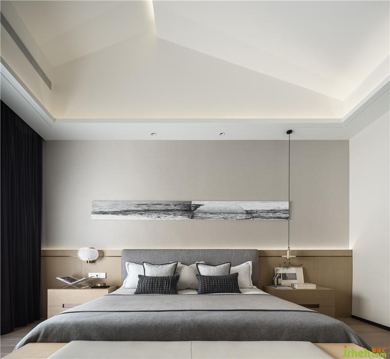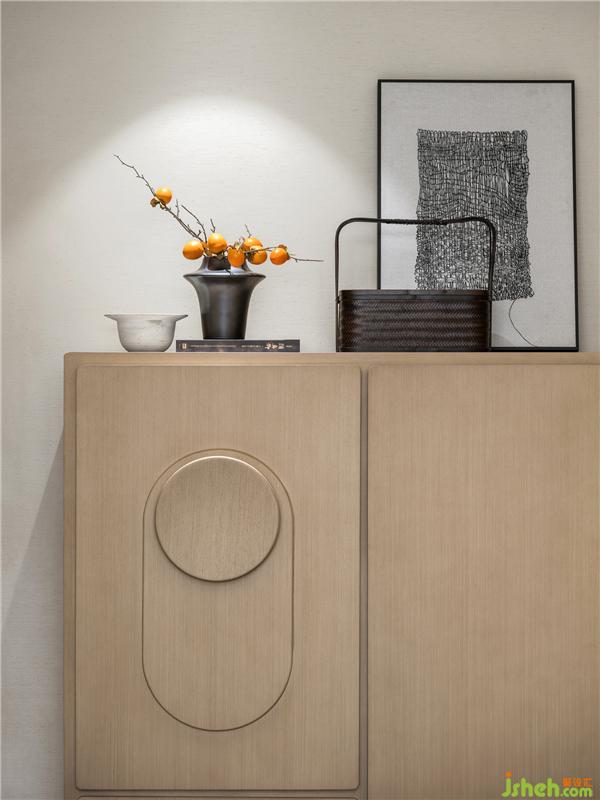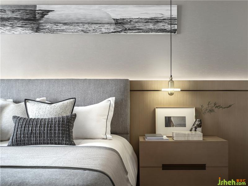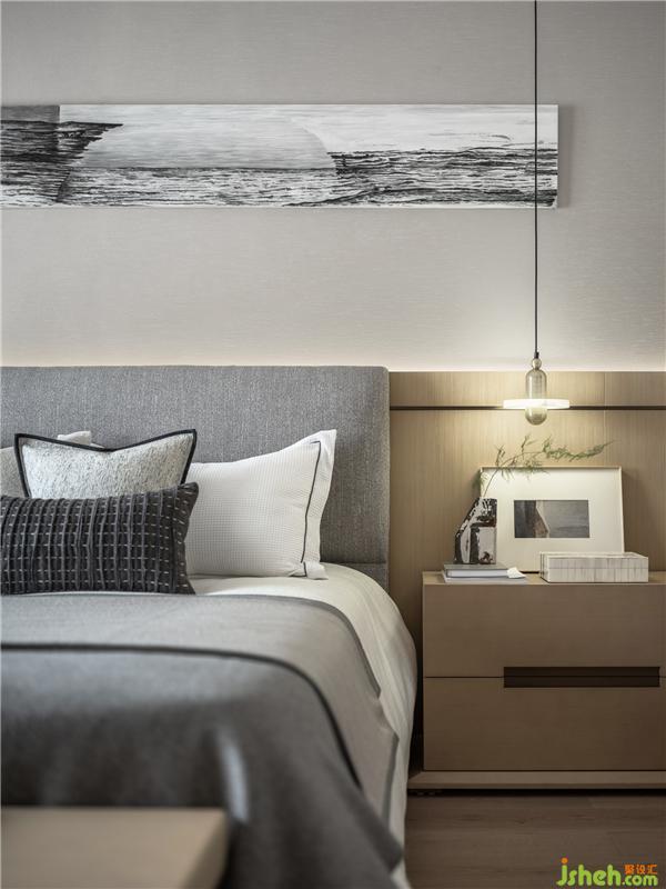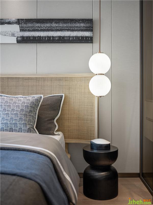次臥配以金屬點(diǎn)綴,在東方意境之外,添加了一絲現(xiàn)代生活的精致感。以求材質(zhì)觸感和細(xì)膩的紋理,來(lái)貼近簡(jiǎn)素居住的舒適度。