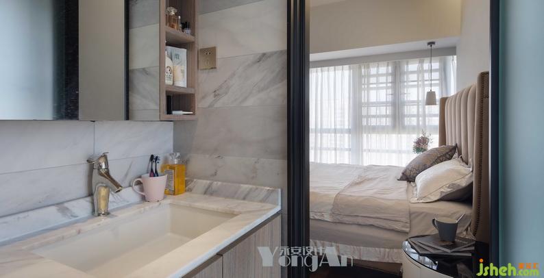 主臥及衛(wèi)生間:衛(wèi)生間的門(mén)改到主臥旁邊朝著主臥窗戶,很好的利用了自然通風(fēng)的條件