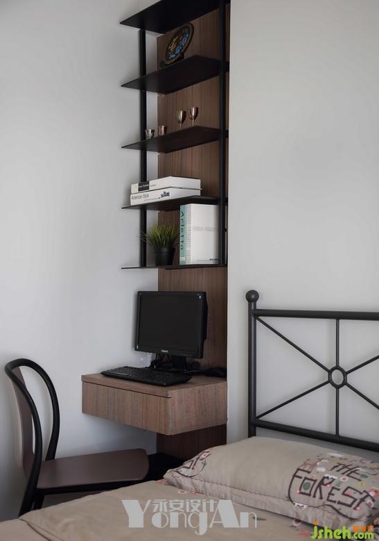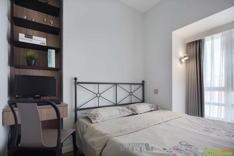 長(zhǎng)輩房:原本不大的房間,但是有著落地窗戶,采光非常好,墻面修飾簡(jiǎn)潔,以乳膠漆為主書(shū)桌,書(shū)柜,衣柜等功能齊全